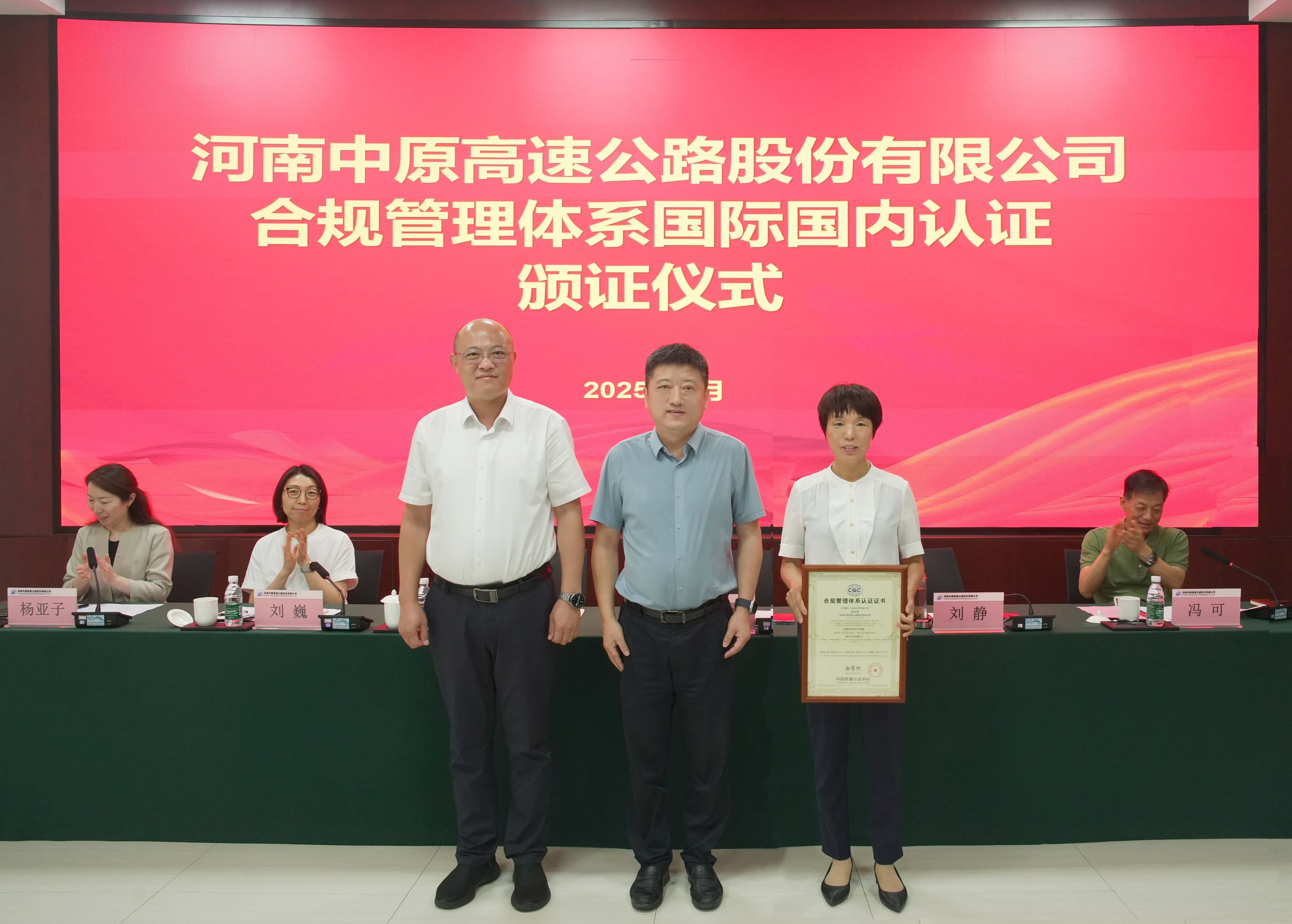 集團黨委委員、副總經理袁凍雷參加中原高速合規“雙認證”頒證儀式并專題聽取科創工作匯報